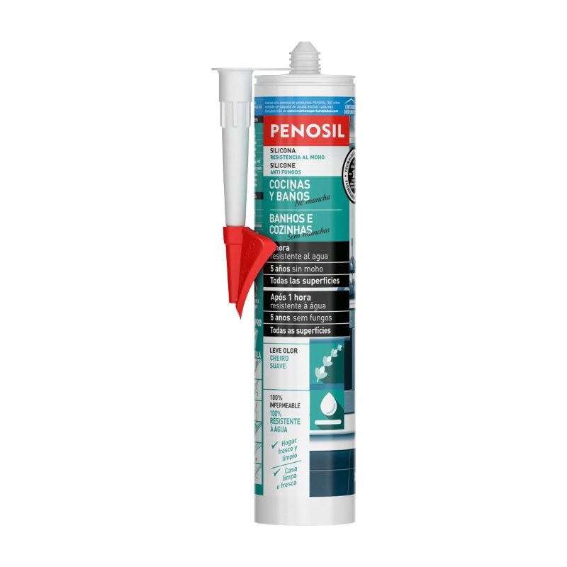 - Se adhiere perfectamente a la mayoría de los materiales de cocinas y baños.