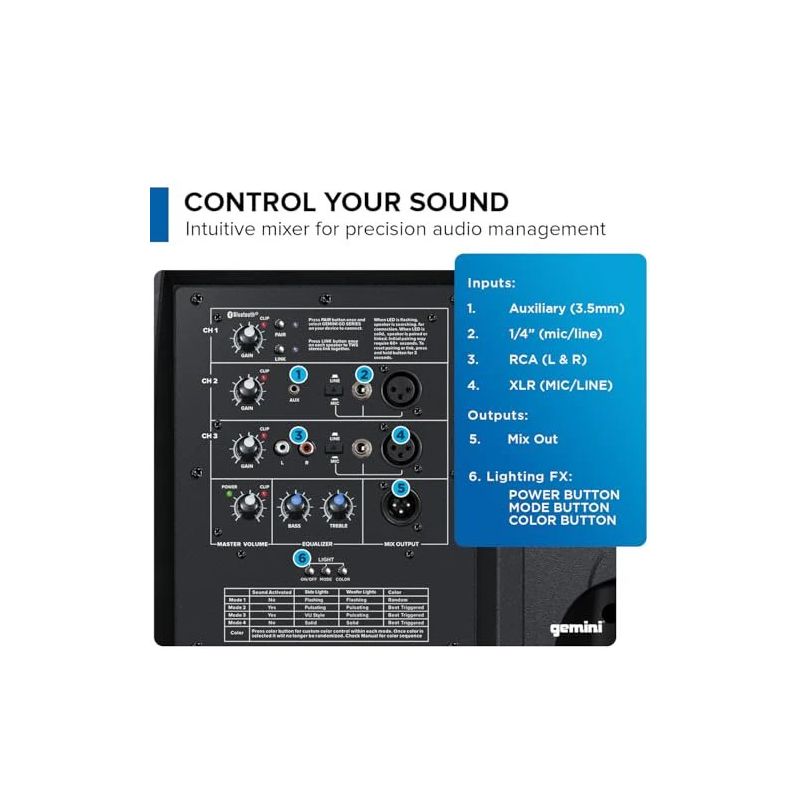 Experimente a atmosfera de festa definitiva com nossa potente caixa de som PA Bluetooth, que oferece som rico e de alta fidelidade por meio de um woofer de 15 polegadas e um tweeter de titânio de 1,35 polegadas. A iluminação LED integrada para festas com efeitos ajustáveis transforma qualquer espaço em uma pista de dança vibrante, tornando-a a caixa de som perfeita para qualquer evento. Com 1300 watts de potência de pico, desfrute de um áudio dinâmico que anima multidões, desde reuniões íntimas até grandes eventos ao ar livre, proporcionando um som nítido e potente em todas as frequências. Transmitir suas faixas favoritas é fácil com a tecnologia Bluetooth e a conexão True Wireless Stereo (TWS), permitindo o emparelhamento com outra caixa de som compatível para uma experiência sonora abrangente — ideal para configurações de DJ ou sistemas de alto-falantes sem fio. Projetada para versatilidade, sua estrutura durável e leve e múltiplas alças facilitam o transporte para qualquer local. Ajuste seu áudio com o mixer de três canais integrado, completo com ganhos individuais e várias entradas, tornando-a uma ferramenta essencial para DJs, músicos e engenheiros de som. Aprimore seu som e ilumine a noite com esta caixa de som PA Bluetooth dinâmica.
