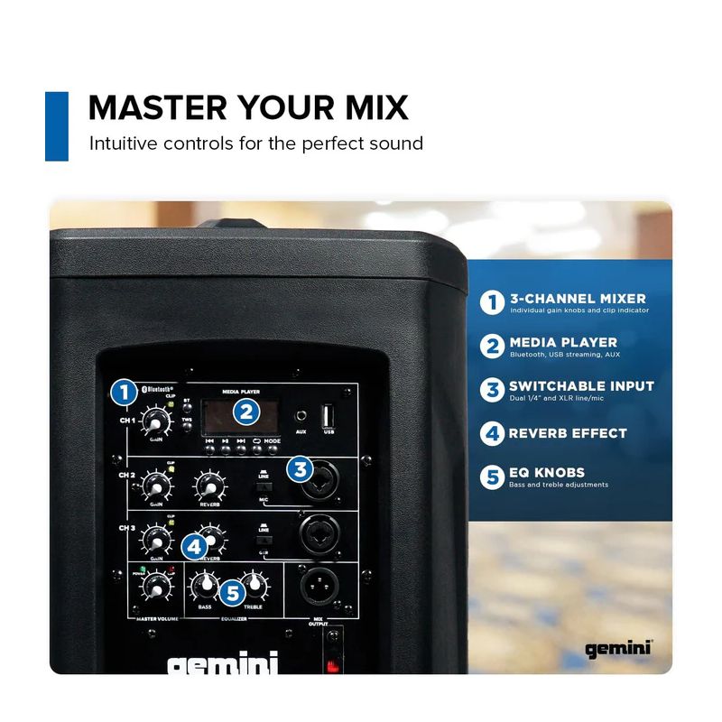 - SOLUÇÃO COMPLETA PARA SOM AO VIVO: Equipada com um mixer integrado, controles de equalização abrangentes e opções de expansão via saída XLR, esta caixa de som amplificada se adapta a qualquer cenário. Ela se destaca como parte de sistemas de PA com microfone e caixas de som para bandas ao vivo, um sistema de som portátil para DJs ou até mesmo como uma caixa de som independente para DJs. Com o benefício adicional de indicadores LED para monitoramento, é a escolha certa para artistas que buscam um sistema de projeção de som confiável e de alta qualidade.