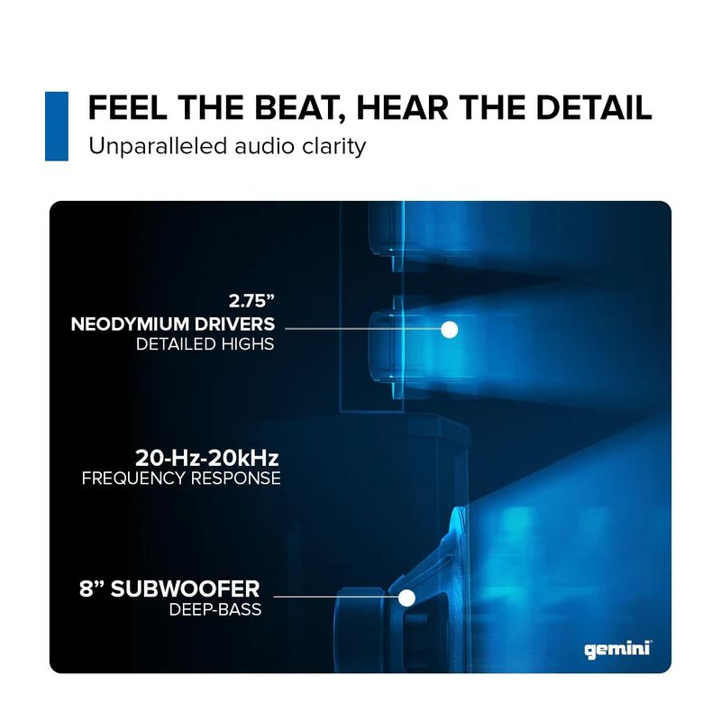 - POTÊNCIA PORTÁTIL: Experimente a fusão de potência e portabilidade com 1200 watts de potência de pico em um formato compacto. Como um sistema de caixas de som PA portátil, oferece a facilidade de transporte com a intensidade necessária para caixas de som de DJ com subwoofer, tornando-se um item essencial em qualquer arsenal de equipamentos de DJ. Seja uma caixa de som PA amplificada para uma apresentação improvisada na rua ou uma caixa de som de torre para um local lotado, sua portabilidade não compromete a qualidade do som.