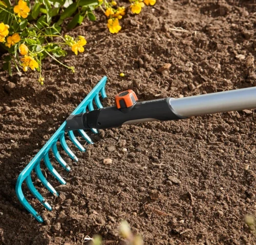 O ancinho do sistema combinado GARDENA é um prático ancinho multifunções, ideal para juntar, aplanar ou trabalhar a terra. O ancinho tem uma largura de trabalho de 30 cm (com 12 dentes) e é adequado para todos os cabos do sistema combinado GARDENA, sendo que a GARDENA recomenda um comprimento de cabo de 150 cm, dependendo da altura do utilizador. O período de garantia é de 25 anos.