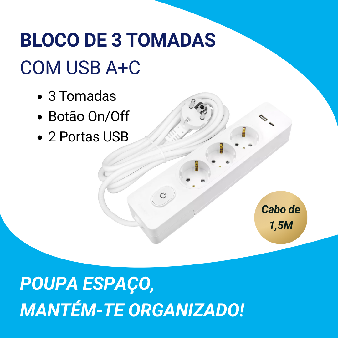 - 3 ENTRADA de 220V 50HZ Com interruptor+USB+TYPE/2400AM
