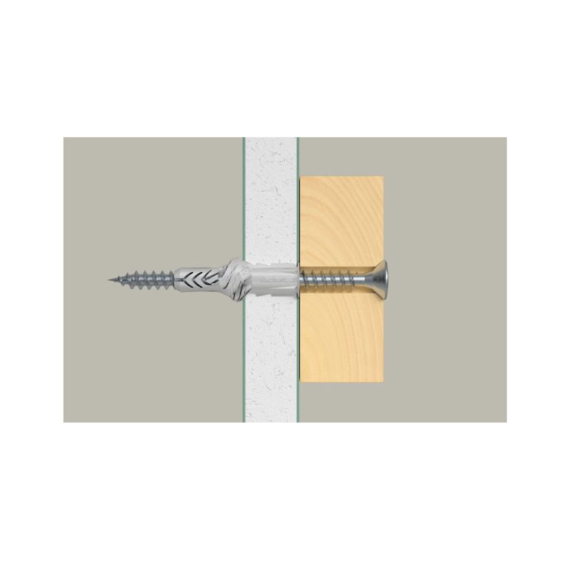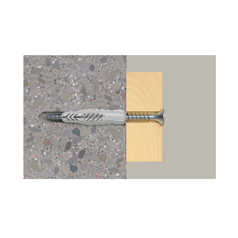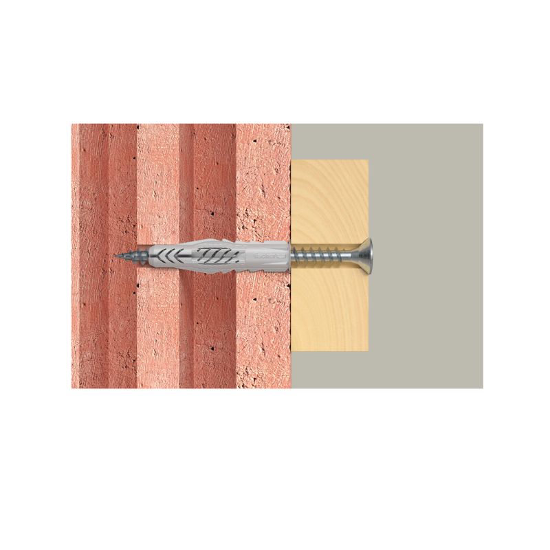 A bucha universal UX da fischer é uma bucha de plástico fabricada em nylon de elevada qualidade. A bucha universal expande em materiais de construção maciços e entrelaça-se em materiais de construção ocos e em painéis de construção, para uma máxima retenção. Isto faz com que a UX da fischer seja sempre a escolha certa – mesmo quando não sabe qual é o material de construção. O rebordo impede que deslize para dentro do furo durante a instalação. Na versão sem rebordo, e profundidades de ancoragem maiores, a bucha universal UX da fischer é indicada para instalação de encaixe. A bucha universal UX da fischer é recomendada, por exemplo, para a fixação de candeeiros, varões para cortinas, armários leves e rodapés. Os conjuntos de fixação com parafusos, olhais e ganchos, são a melhor solução para praticamente todas as aplicações.