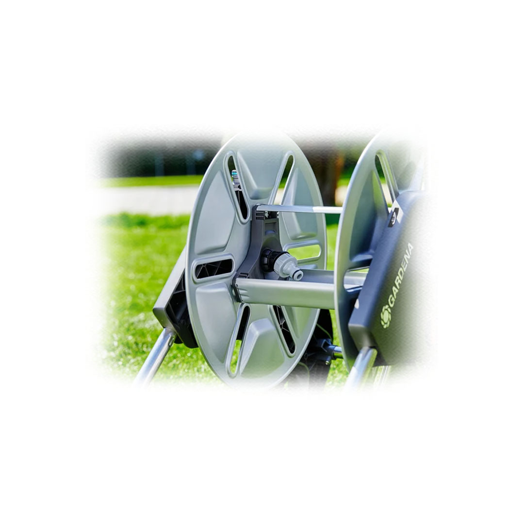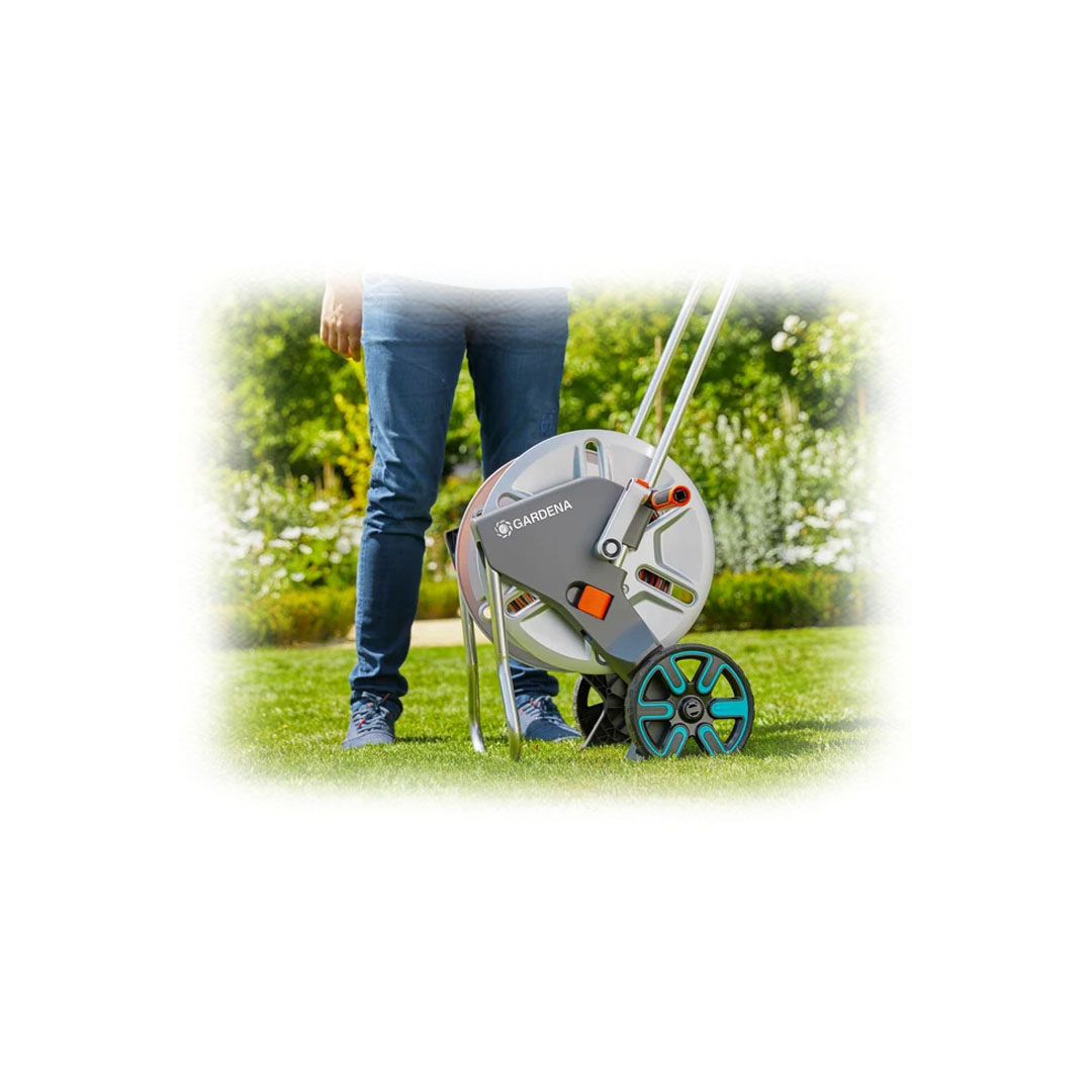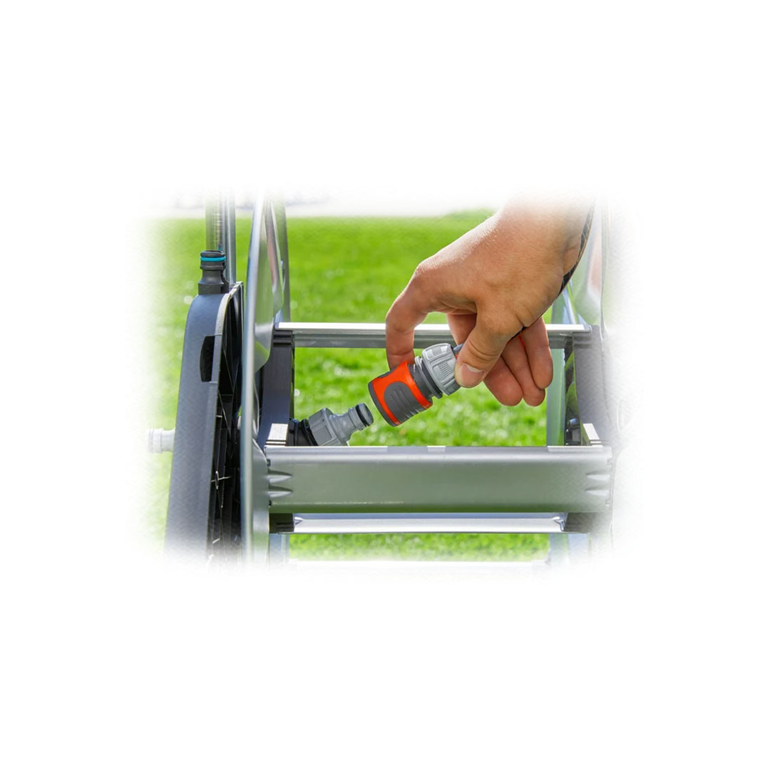 O CleverRoll M Metal é um suporte robusto e prático para mangueiras de jardim, garantindo durabilidade e facilidade de utilização. Com uma estrutura metálica resistente, proporciona estabilidade e uma longa vida útil. O seu design ergonómico facilita o enrolamento da mangueira, evitando nós e dobras, tornando a rega mais eficiente e organizada.