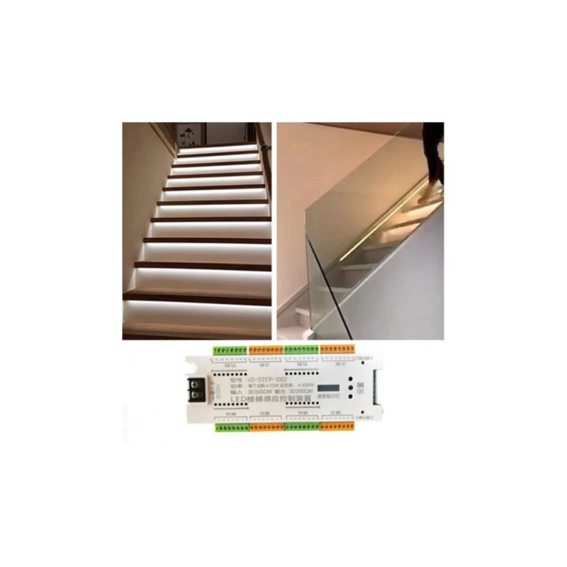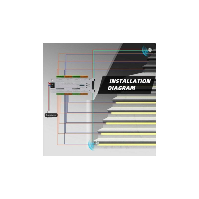 Controlador de Fita Led para Escadas DC12V/24V, com capacidade máxima de 20A, adequado para até 32 escadas, exclusivo para LED 2835 com 60, 120 ou 240 LEDs.