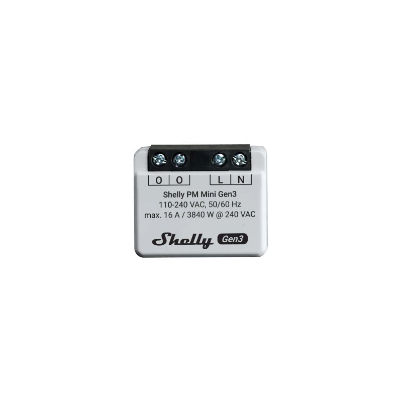 O Shelly PM Mini Gen3 é um controle remoto inteligente que opera via Wi-Fi e Bluetooth, não requerendo HUB. Ele é projetado para monitorar com precisão o consumo de energia e oferece armazenamento gratuito na nuvem para análise e otimização. Suporta diversas funcionalidades como scripts, webhooks, MQTT, WebSocket, entre outras, e é compatível com Alexa e Google Home. Com especificações técnicas que incluem CPU ESP-Shelly-C38F, consumo de energia inferior a 1,2W, e proteção de até 16A, o dispositivo tem um alcance de até 10 m internamente e 30 m externamente. O produto é montado na parede, feito de plástico, e opera em uma faixa de temperatura de -20°C a 40°C.