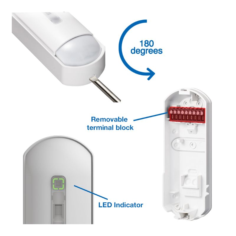 - Fácil instalação: Tal como todos os modelos FlipX, o Advanced visa facilitar ao máximo o processo de instalação para poupar tempo e trabalho. Uma das suas principais características é um indicador LED multicolorido de fácil visualização para ajudar na configuração. A tampa com fecho de 180 graus também é incrivelmente fácil de remover em segundos. Outra característica importante, exclusiva do FlipX Advanced, é o bloco de terminais removível para uma ligação fácil e rápida e a tomada de resistência EOL para uma instalação simples. Todos os modelos FlipX têm também uma altura de montagem flexível de 2 a 3 metros, para que se possam integrar facilmente em interiores com tetos mais altos.