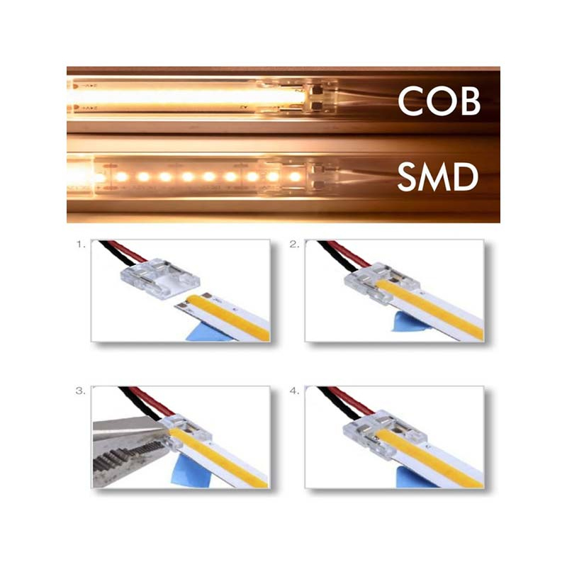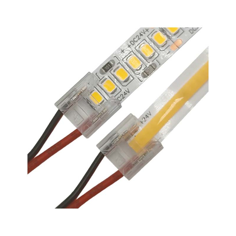 / Kit 10 unidades Conector Transparente com cabo para Fitas LED COB + SMD – 10mm – IP20
