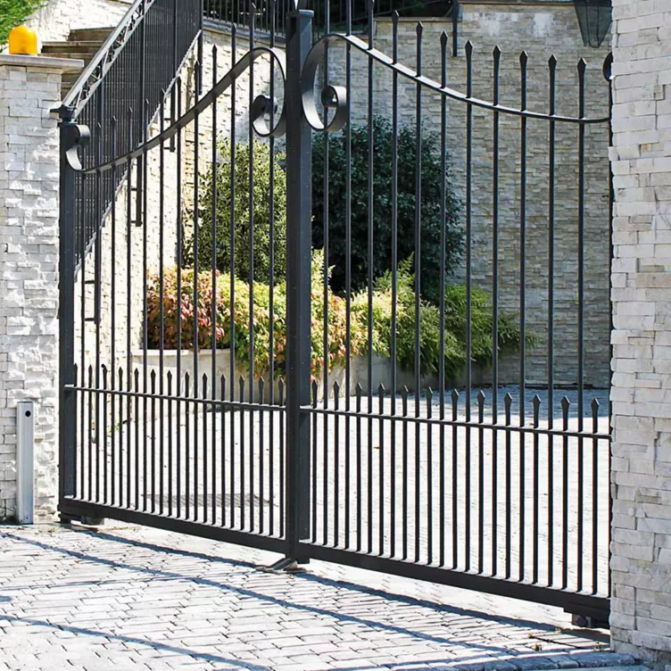 Solução profissional para portões pesados de 2 folhas (4+4m) com atuadores irreversíveis e capacidade máxima de 800kg por folha. Torque de 340 Nm e abertura rápida de 18s/90°, compatível com controlo de curso magnético e painéis LCA70/LCA80. Proteção IP67 para instalação em condições climáticas adversas (-20°C a +55°C). Ideal para uso intensivo em condomínios ou indústrias, incluindo liberação manual com chave e alimentação 230Vca.