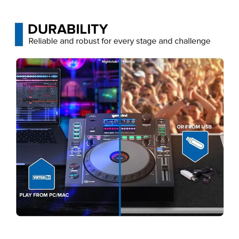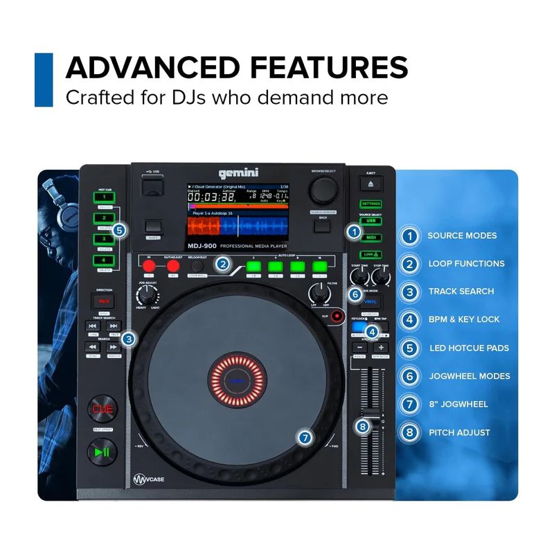 Leitor multimédia profissional para DJ com ecrã tátil de 8 polegadas e USB Gemini MDJ-900