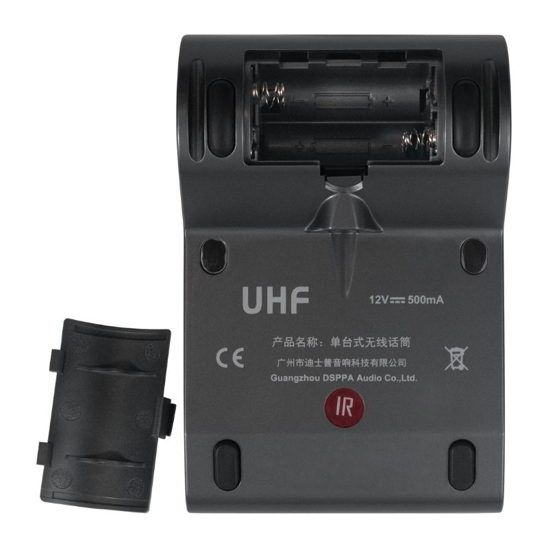 | Outros | – Botão para ligar/ ativar no microfone – Botão “SET – Botão “DOWN – Botão “UP – Indicador LED na haste do microfone |