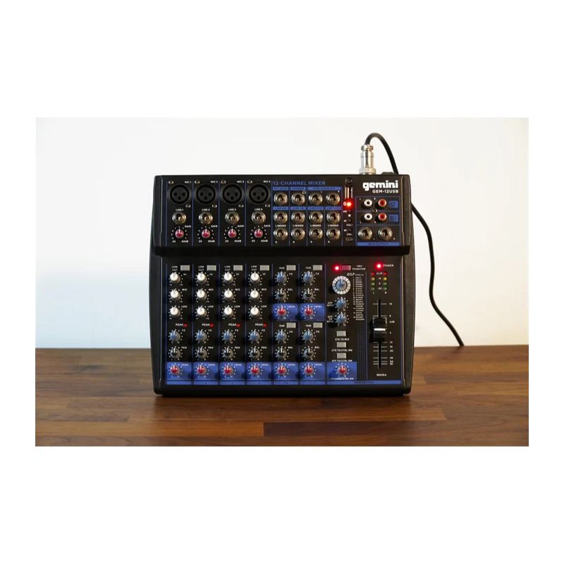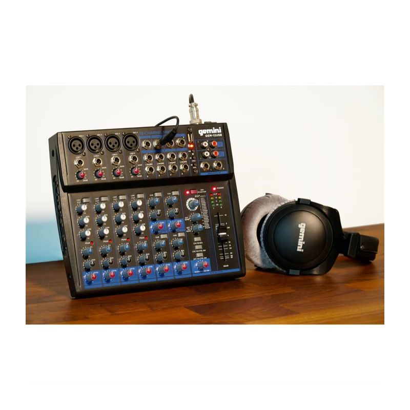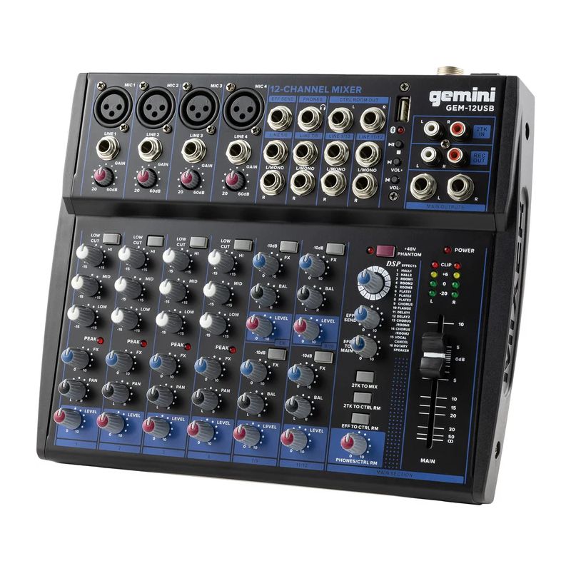 O mixer de áudio profissional GEM-12USB oferece som com qualidade de broadcast para podcasting, apresentações ao vivo e gravações em estúdio. Este mixer Bluetooth de 12 canais combina recursos de streaming sem fio com funcionalidade de reprodução USB e processamento de áudio de nível profissional. Os recursos incluem 4 pré-amplificadores de microfone de última geração com alimentação fantasma para microfones condensadores, equalizador de 3 bandas com controle de volume dedicado para modelagem precisa do som e controle de delay personalizável para efeitos de áudio aprimorados. O circuito analógico de ruído ultrabaixo garante gravações cristalinas, enquanto o streaming Bluetooth permite a reprodução sem fio de smartphones, tablets e outros dispositivos compatíveis. Completo com saída para fone de ouvido e controle de volume dedicado para monitoramento em tempo real. A configuração de 12 entradas e 12 barramentos oferece recursos de mixagem abrangentes em um design compacto e portátil, adequado para DJs móveis, estúdios domésticos e aplicações em pequenos locais.