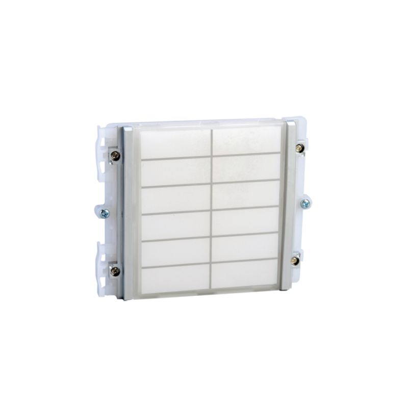 - Módulo retroiluminado por led para várias indicações, com acabamento em aço inox. Iluminação cartões seleccionável entre azul/branco/desligada. Dimensões: 112×89,5×39.
