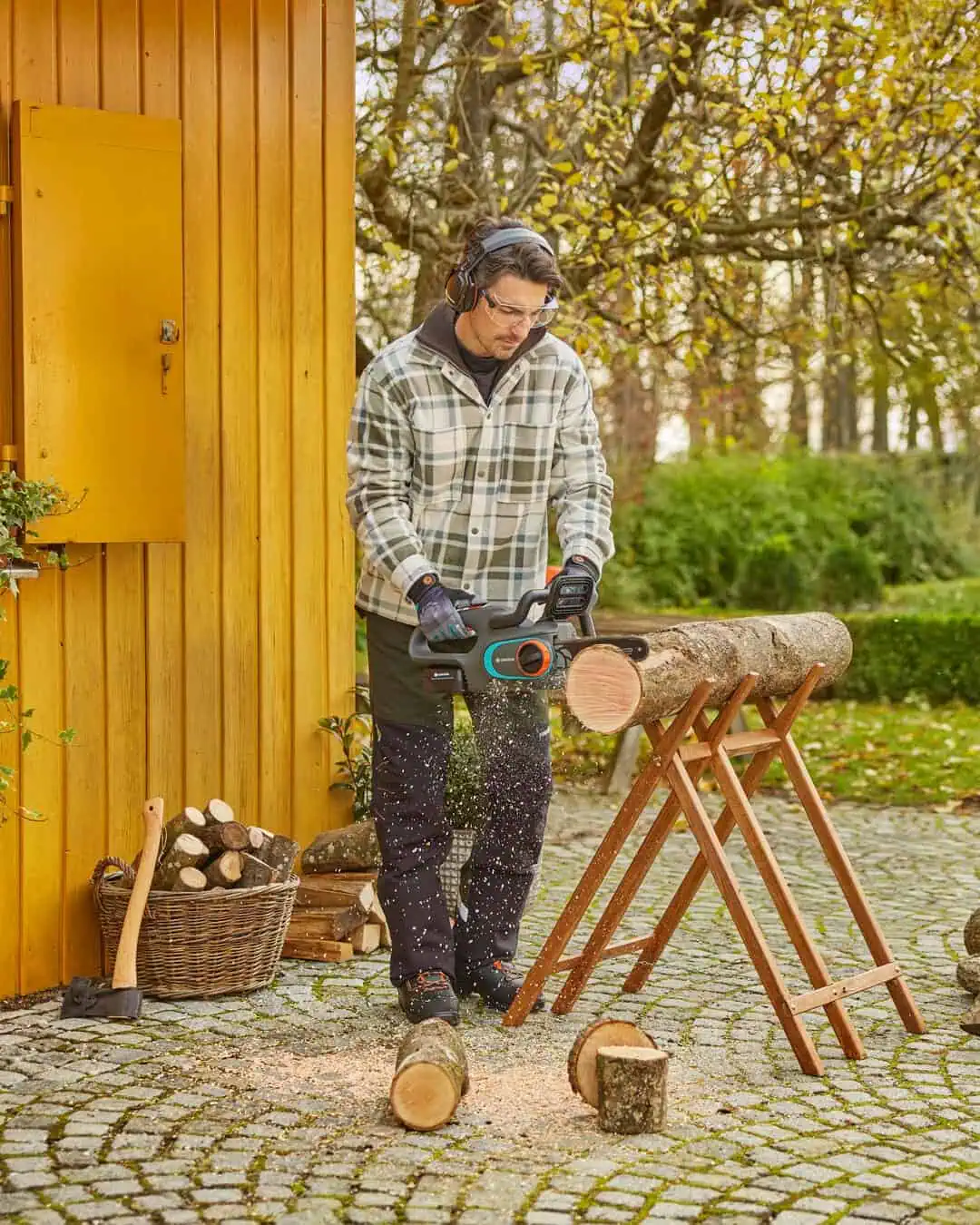 Obtenha um corte potente e preciso com a motosserra a bateria de 18V de Gardena. Equipada com uma corrente e um sabre Oregon® alimentados por um motor sem escovas e uma bateria P4A de 18 V, esta motosserra compacta é ideal para jardinagem de lazer, tratamento de árvores e corte de lenha.