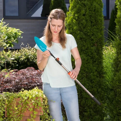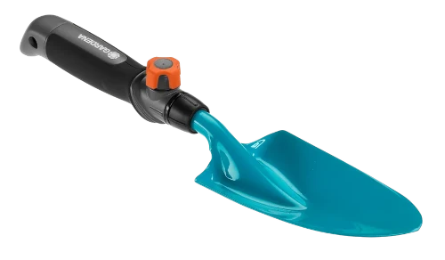 Com a pá manual combisystem da GARDENA, pode plantar e replantar facilmente plantas em jardineiras, vasos ou floreiras. O combisystem da GARDENA permite um uso flexível graças aos acessórios intercambiáveis. A talocha manual é compatível com todos os cabos do sistema combi da GARDENA, e pode ser montada e fixada ao cabo.