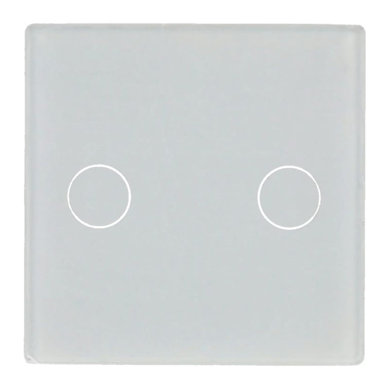 Painel único em vidro temperado branco com 2 botões touch independentes e retroiluminação. Design extremamente compacto e fino (47x47x3 mm), ideal para integração discreta em ambientes modernos. Controlo elegante e sensível ao toque para dois circuitos de iluminação. Instalação simplificada em ambientes residenciais ou comerciais.