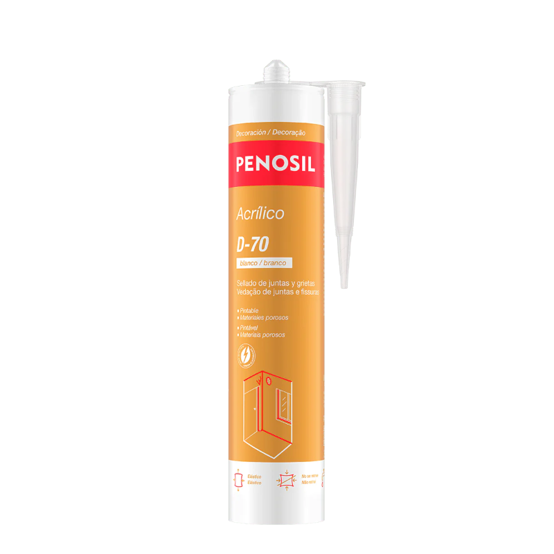 - Aplicar o mástique acrílico na junta, pressionando o gatilho da pistola e movendo a cânula continuamente ao longo da junta.