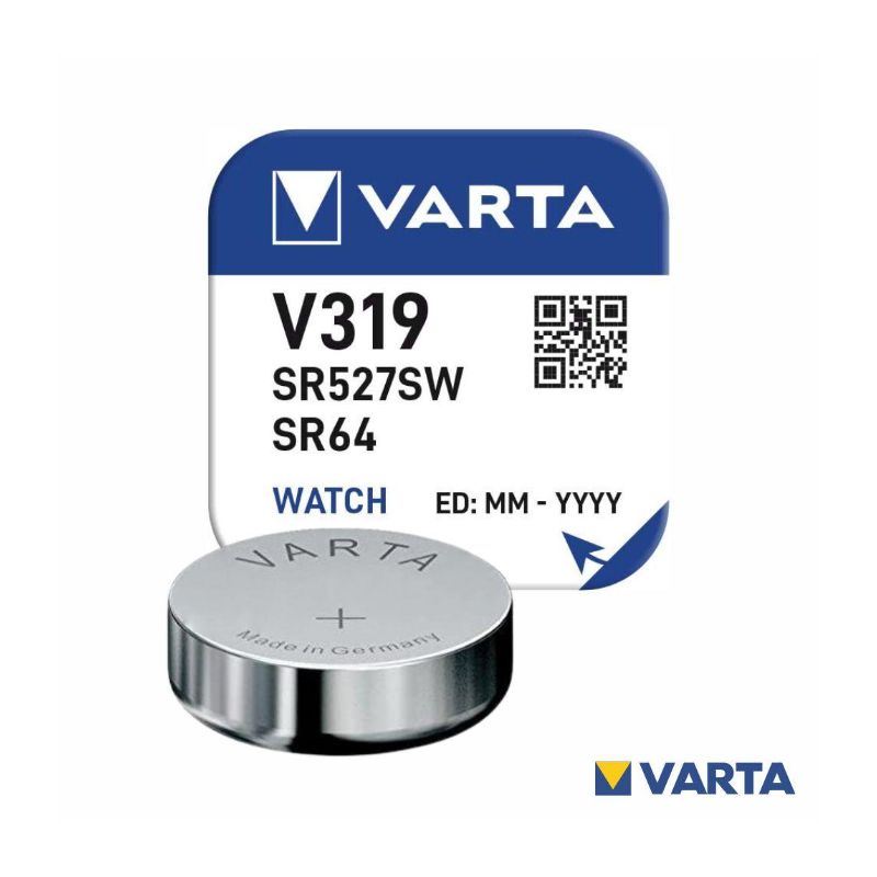 Pilha botão Varta de Óxido de Prata 1.55V, modelo SR64 (V319/SR527SW). Ideal para relógios, calculadoras e pequenos dispositivos eletrónicos que exigem tensão estável e duradoura. Tecnologia de óxido de prata garante máxima precisão e maior vida útil. Fornecida em blister protetor para perfeita conservação. A escolha confiável para aplicações que não admitem falhas.