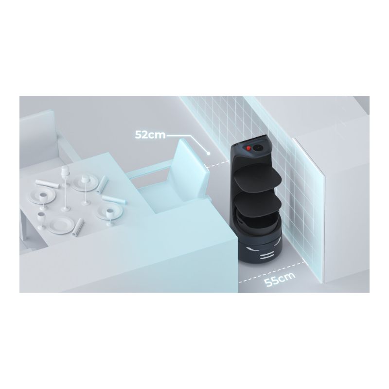 | Navegação e posicionamento | – SLAM visual (câmara de infravermelhos) – Laser SLAM – Câmaras RGBD para evitar obstáculos |