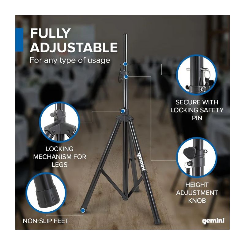 - 1 Suporte profissional para colunas em aço inoxidável ST-04 – Capacidade para 90 kg Gemini