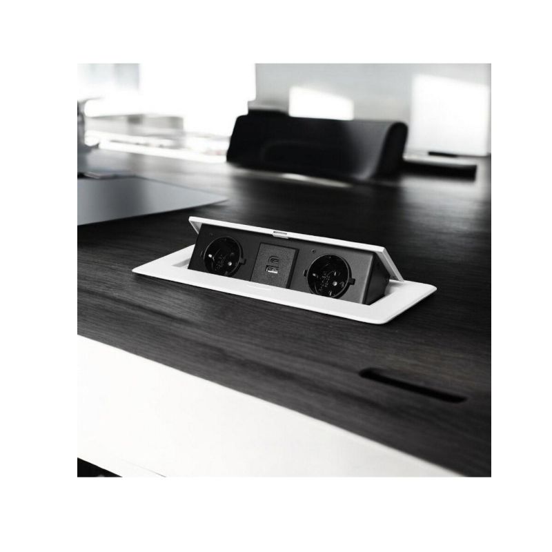 - 1 Tomada Embutida para Móveis com Borda Plana Fresada, Carregador USB e cabo de 1,5 m, 2x2P+E, 2xUSB, Branca Orno