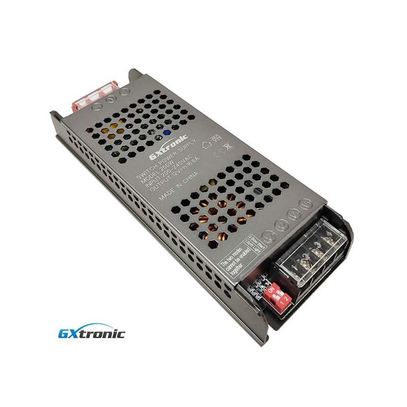 Transformador Slim 12V 200W 16.6A IP20 GXtronic p/ Fita Led