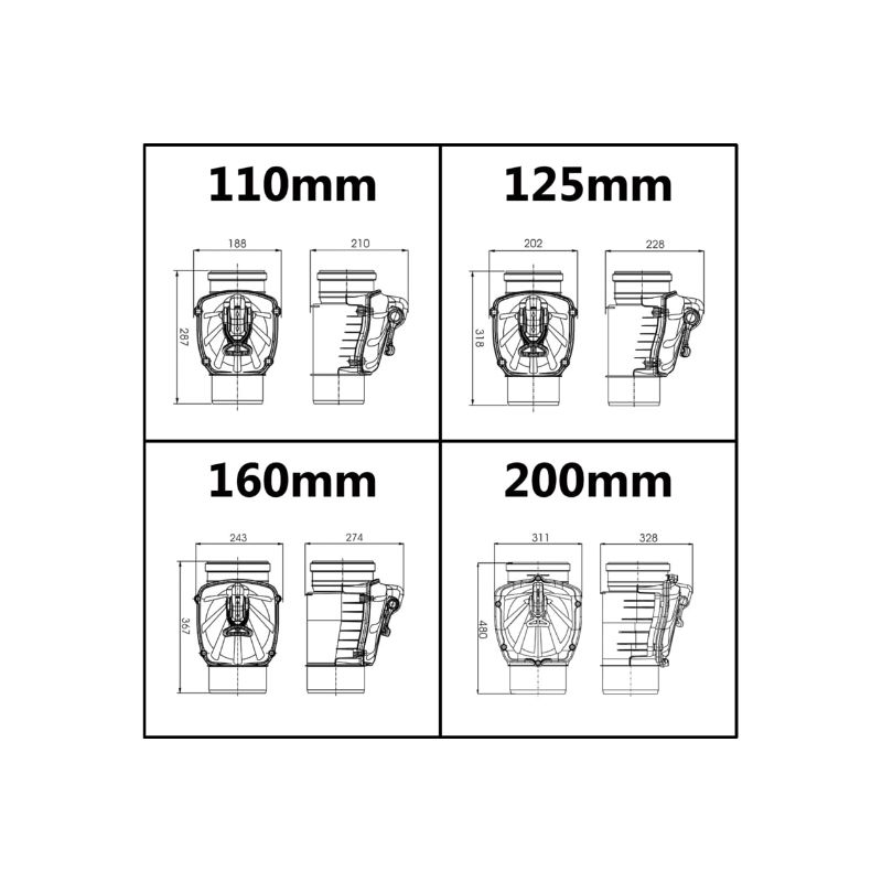 • Disponível para instalação em tubos de drenagem de 110, 125, 160, 200 mm de diâmetro.